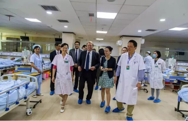 在省屬相關(guān)部門和專家的陪同下,Kent Thiry總裁參觀了株洲市二醫(yī)院血液凈化中心,并與株洲市二醫(yī)院腎內(nèi)及血液凈化中心主任臧翠平教授進(jìn)行了友好交流,臧教授向Kent Thiry總裁詳細(xì)介紹了我院血液凈化中心近年開展的各項(xiàng)血液凈化技術(shù)項(xiàng)目及取得的成果,隨后Kent Thiry總裁與周恕院長(zhǎng)等就中國(guó)及美國(guó)血液透析的現(xiàn)狀及未來發(fā)展進(jìn)行廣泛交流與溝通,美國(guó)客人表達(dá)了今后進(jìn)一步加強(qiáng)交流的愿望。