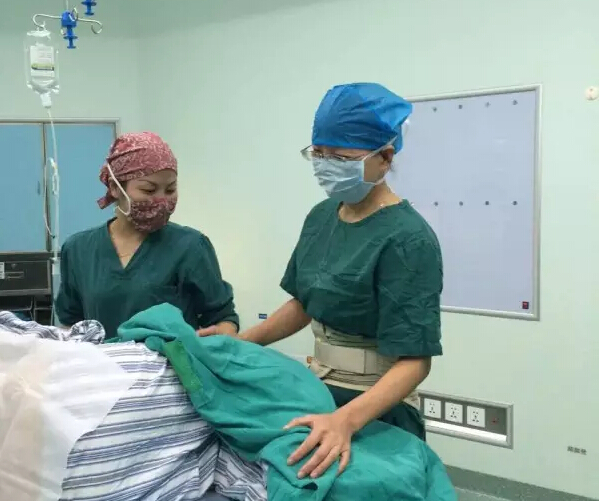 這怎么行?想科室人員少,病人多,別說(shuō)是休息一個(gè)月,就是休息一天也不行?。〉诙煸绯?,鄧主任在家人的攙扶下來(lái)到了手術(shù)室,為昨天已經(jīng)預(yù)約好的孕婦做剖宮手術(shù)。只見(jiàn)她系著寬寬的“腰帶”站在手術(shù)臺(tái)前,異常艱難地?fù)沃碜訛椴∪俗鍪中g(shù)。預(yù)約患者的手術(shù)做完后,她仍然沒(méi)有躺下休息,將脊柱科醫(yī)生的叮囑拋到九霄云外去了,那天,她竟一連做了三臺(tái)手術(shù)。