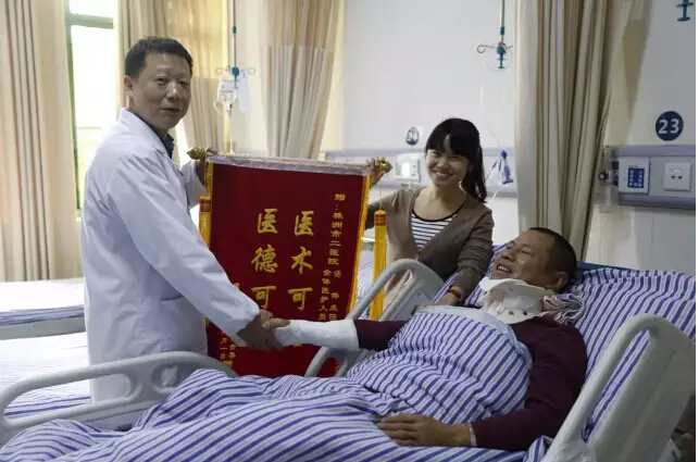 11月2日,重獲新生的胡先生給脊柱外科送來了一面錦旗,他說, “沒有二醫(yī)院的精心治療,我可能就老命不保”。