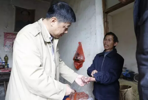 周恕與困難戶王福生親切交談,并詢問了他家的生活情況。據(jù)了解,63歲的王福生患有糖尿病,家中有5口人,是低保戶,本人左手殘疾,妻子多病,雖然享有低?;旧钅艿玫奖U?,但小孩要讀書,自己又因病因殘無勞動能力,生活依然比較困難。周恕為王福生送上了慰問金,并親自為王福生問診把脈,針對他的身體狀況給與了合適的調(diào)理建議,還特別叮囑王福生遇到困難要及時與自己取得聯(lián)系,促使困難盡快解決。