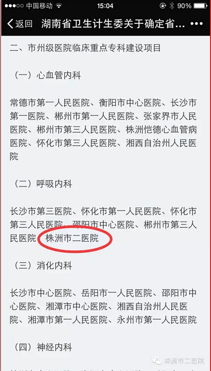 “市州級(jí)醫(yī)院臨床重點(diǎn)??平ㄔO(shè)項(xiàng)目”
