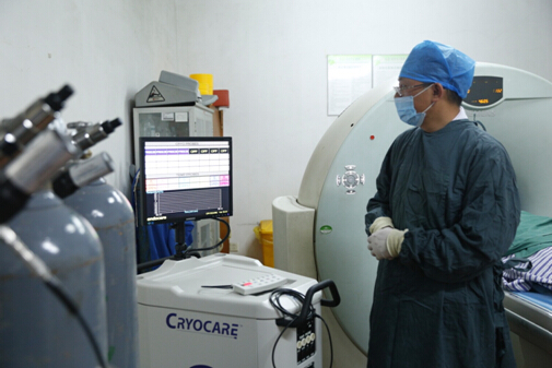 我院腫瘤一科近幾年來專注于腫瘤微創(chuàng)技術(shù)的研究,先后開展了射頻消融、微波消融、放射性粒子植入、動(dòng)脈血管介入等腫瘤“綠色微創(chuàng)技術(shù)”1000余臺(tái),取得了良好的社會(huì)效益。這次我們引進(jìn)的美國“氬氦刀冷凍消融技術(shù)”使我科腫瘤治療手段更齊全。