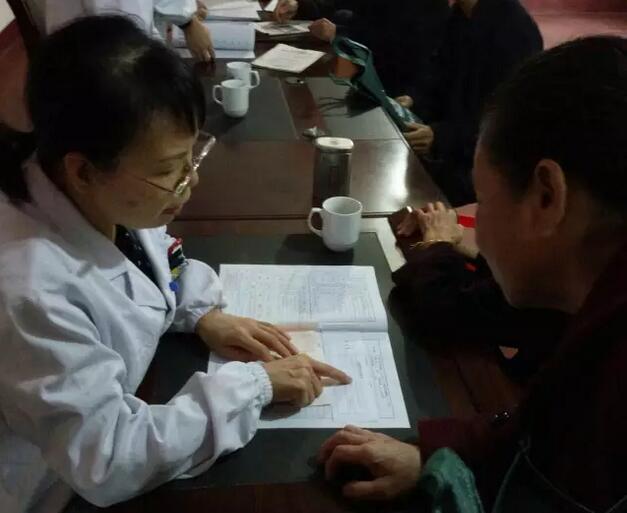 10月21日清晨,扶貧隊的專家們帶上了扶貧藥物驅(qū)車60多公里來到醴陵市均楚鎮(zhèn),見到村民們早早地在活動地點等候,專家們未休息片刻便立馬為等候的群眾免費測量血壓、心電圖,測血糖、聽診心肺等,針對群眾們的常見病、慢性病,專家們進(jìn)行了初步篩查、診斷和一般治療。