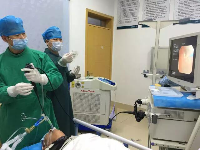 隨著激光技術(shù)的發(fā)展,一門嶄新的應(yīng)用學(xué)科——激光醫(yī)學(xué)逐步形成,激光的獨(dú)特優(yōu)點(diǎn),解決了在基礎(chǔ)研究和臨床應(yīng)用中不能解決的許多難題。激光可通過各種內(nèi)窺鏡進(jìn)行手術(shù),如鈥激光通過支氣管鏡行呼吸道內(nèi)的瘢痕狹窄、炎性肉芽及息肉、良惡性腫瘤等進(jìn)行治療,也可處理支氣管結(jié)石,回收支架,切割手術(shù)縫線及特殊異物等,應(yīng)用廣泛,具有重要臨床意義。