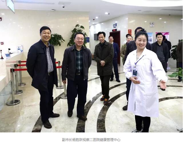 楊勝躍副市長(zhǎng)一行首先視察了二醫(yī)院門(mén)診大廳,隨后詳細(xì)考察了二醫(yī)院康復(fù)治療中心和健康管理中心,并認(rèn)真聽(tīng)取了周恕院長(zhǎng)關(guān)于醫(yī)院近年來(lái)工作情況、思路及未來(lái)規(guī)劃的匯報(bào)。