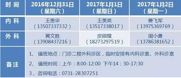 2017年元旦無節(jié)假日門診內(nèi)外科值班表