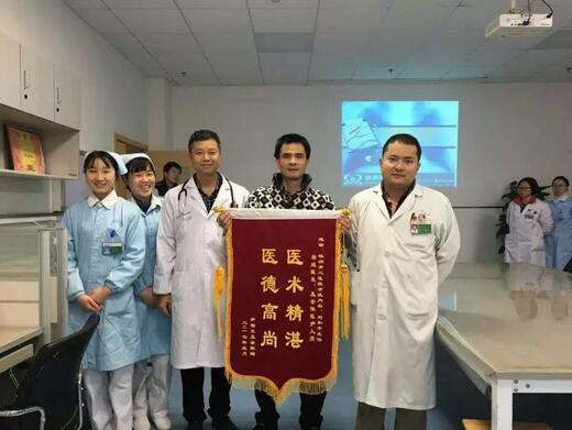 尹先生患有結(jié)核并真菌感染,病情復(fù)雜且非常嚴(yán)重,近2 年來(lái),他多次到省市多家三甲醫(yī)院就診,雖然花費(fèi)巨大但治療結(jié)果均不理想,病情日趨嚴(yán)重。今年2月,尹先生經(jīng)朋友推薦找到株洲市二醫(yī)院呼吸內(nèi)科劉和平主任,劉主任詳細(xì)為尹先生做了檢查,運(yùn)用氬氣刀熱消融等綜合治療手段,終于讓折磨尹先生達(dá)兩年之久的結(jié)核并真菌感染得到很好的控制,心存無(wú)限感謝的尹先生在出院前特意送來(lái)了錦旗,他說(shuō)株洲市二醫(yī)院呼吸內(nèi)科的醫(yī)師真棒,不但醫(yī)術(shù)高明,醫(yī)德也是棒棒的!