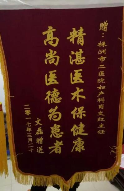 3月23日,再次當(dāng)上了媽媽的文女士將兩面凝聚感動(dòng)與衷心感謝的錦旗分別送給了婦產(chǎn)科肖文紅主任和超聲科劉秀虹主任,“高尚醫(yī)德、精湛醫(yī)術(shù)、像親人般呵護(hù)、溫暖”是她對(duì)兩位主任的高度評(píng)價(jià),也是她求醫(yī)路上親身體會(huì)。
