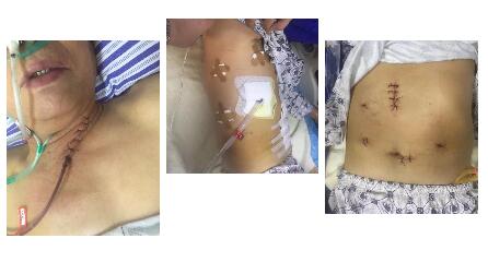 羅大爺,湘潭人,69歲,術(shù)前一個月出現(xiàn)胸骨后疼痛,通過胃鏡檢查及活檢,確診為食道中分化鱗癌,入我院完善檢查后,無明顯手術(shù)禁忌癥,考慮可行手術(shù)治療。通過術(shù)前科室醫(yī)生的討論,大家一致認(rèn)為此病人可行全腔鏡食管癌三切口根治術(shù),醫(yī)生向患者及家屬說明了此手術(shù)的優(yōu)勢,通過此技術(shù)可大大減少病人的疼痛,術(shù)后病人恢復(fù)更快,并發(fā)癥更低。在經(jīng)過家屬同意后,胸外科在周小勇主任的帶領(lǐng)下為羅大爺實施手術(shù),由于食管周圍遍布心、肺、氣管、主動脈、迷走神經(jīng)、肝臟和脾臟等重要臟器組織、血管,手術(shù)風(fēng)險極高,術(shù)中容不得半點閃失。胸外科團(tuán)隊全神貫注,仔細(xì)解剖,在接連攻克重重困難后,歷時7個多小時,順利完成手術(shù)。病人術(shù)后僅在胸、腹部留下幾個“鑰匙孔”般大小的創(chuàng)口,創(chuàng)傷大大減小,日?;顒佑绊憳O小,術(shù)后患者恢復(fù)順利,患者及家屬對胸外科此項技術(shù)給予高度贊揚。