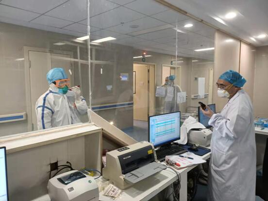 但這一去也許要幾個月,充滿著風(fēng)險,年逾七十的老父親內(nèi)心難以割舍,執(zhí)意要到醫(yī)院的集合點送他,拉著兒子的手久久不愿松開,淚水浸滿了他的雙眼。大年初一下午七時,載著株洲市75名醫(yī)務(wù)人員組成的醫(yī)療隊急馳湖北。到達(dá)后,身為湖南醫(yī)療隊株洲分隊二醫(yī)院醫(yī)療組組長的張乃文立即組織大家投入緊張的戰(zhàn)斗。26 日即開始學(xué)習(xí)演練,30 日便進駐大別山醫(yī)療中心。進駐的當(dāng)天,便一直忙到凌晨兩點,第二天繼續(xù)查房,并對危重病例討論,這樣連軸轉(zhuǎn)的工作一直持續(xù)著……